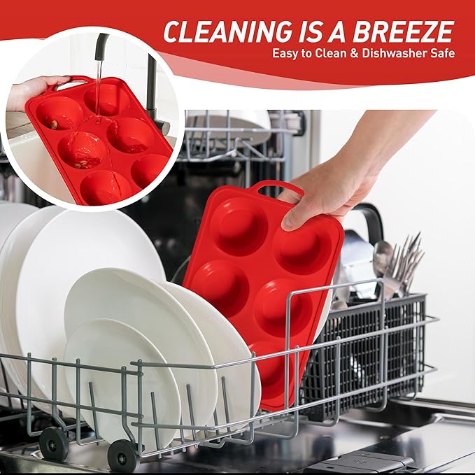 - 【Effortless Release Every Time】Experience 1-second demolding! Simply press the flexible food-grade silicone base to pop out cupcakes intact - no scraping or greasing required. Ideal for sticky recipes like caramel pecan muffins or gooey chocolate lava cakes. Our baking cupcake muffin pan can be safely placed in the dishwasher, and the silicone baking cupcake muffin pan material reduces oil residue by 85% compared to metal baking pans, making it easy to rinse even with simple running water.