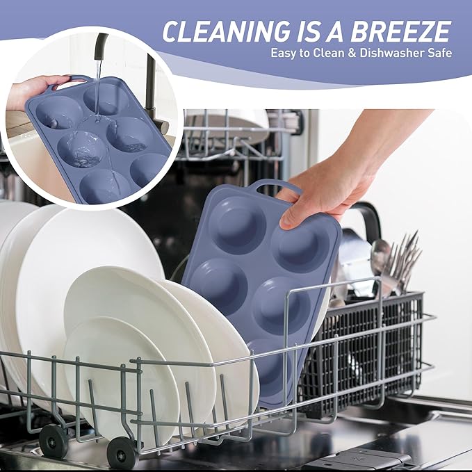 - 【Effortless Release Every Time】Experience 1-second demolding! Simply press the flexible food-grade silicone base to pop out cupcakes intact - no scraping or greasing required. Ideal for sticky recipes like caramel pecan muffins or gooey chocolate lava cakes. Our baking cupcake muffin pan can be safely placed in the dishwasher, and the silicone baking cupcake muffin pan material reduces oil residue by 85% compared to metal baking pans, making it easy to rinse even with simple running water.