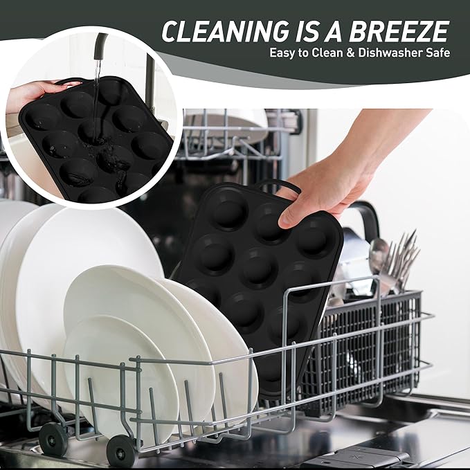 - 【Effortless Release Every Time】Experience 1-second demolding! Simply press the flexible food-grade silicone base to pop out cupcakes intact - no scraping or greasing required. Ideal for sticky recipes like caramel pecan muffins or gooey chocolate lava cakes. Our baking cupcake muffin pan can be safely placed in the dishwasher, and the silicone baking cupcake muffin pan material reduces oil residue by 85% compared to metal baking pans, making it easy to rinse even with simple running water.