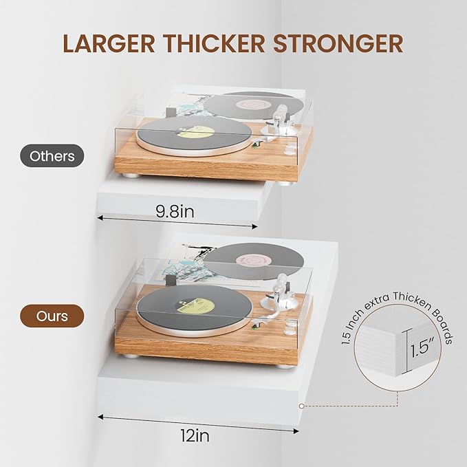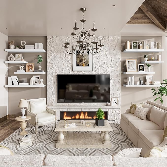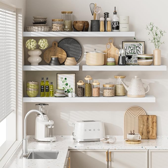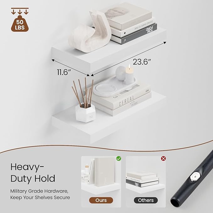 - Extra Deep Floating Shelves: Measuring 11.6β D x 23.6β W x 1.5β H, these shelves are crafted for maximum depth and durability. The spacious 12β depth gives you plenty of room for stylish display, organized storage, and decorative accents. Perfectly suited for your bathroom, kitchen, or living room, they enhance both function and flair in any space!