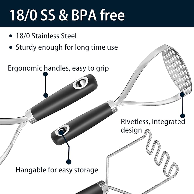 - Multifunctional: This masher set includes two different types of mashers for multiple mashing scenarios, including potatoes, avocado, vegetables, beans, nuts, fruits, squash, potatoes and more!