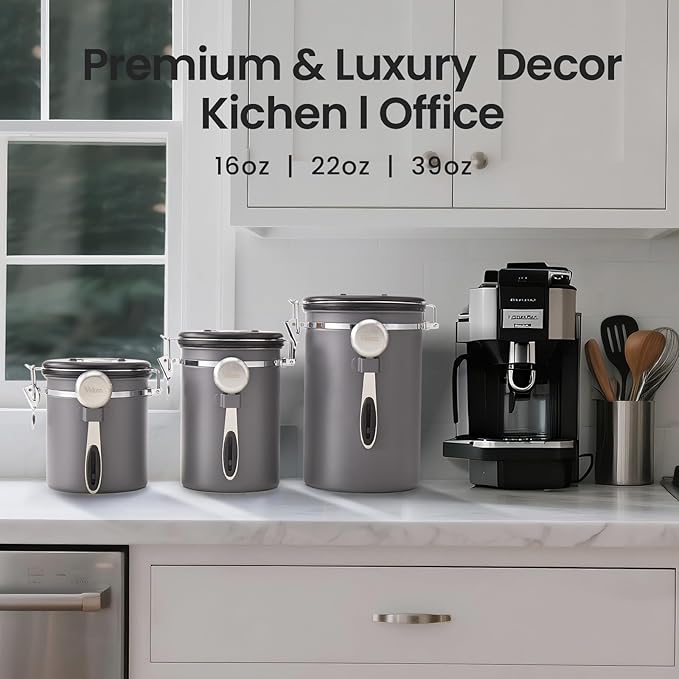 - 【Reason to Choose Veken】Crafted from durable 304 stainless steel, Veken coffee canisters put forth our strength to preserve more freshness of each coffee bean. Every detail is designed with your coffee experience in mind. Choose Veken for reliable, elegant coffee storage that enhances your daily coffee experience.