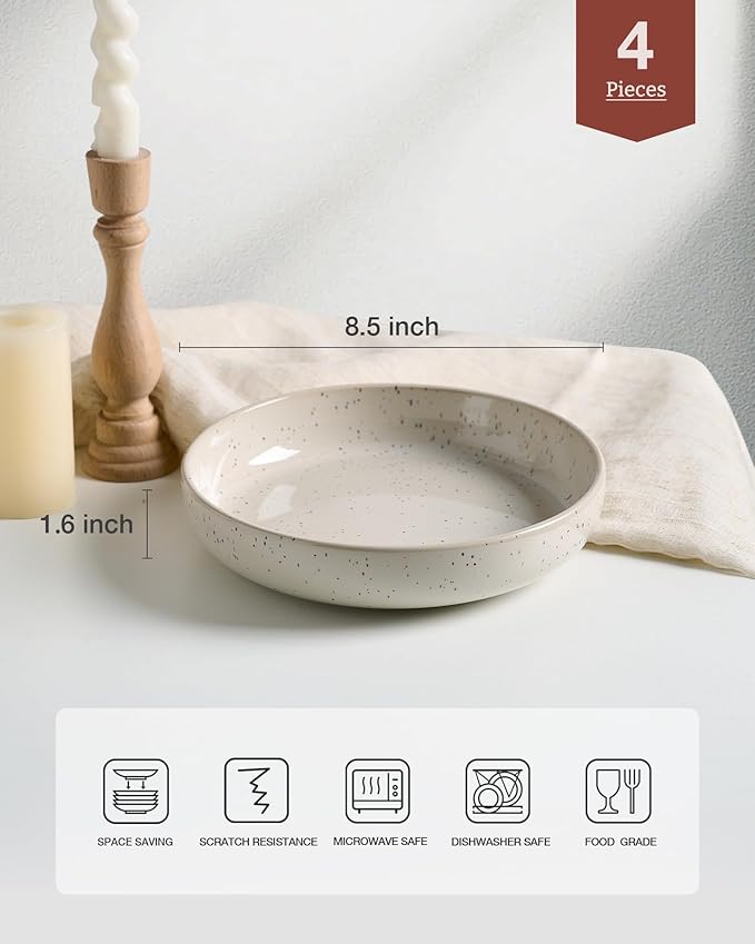 famiware Milkyway 33 oz Bowl Set, Pasta Bowls Set of 4, Salad Bowls, Double Reactive Glaze, Sturdy & Stackable, Ideal for Housewarming, Festivals, Creamy White with Speckles