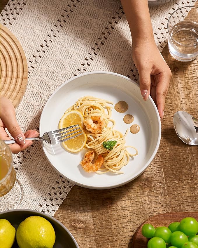 - 【FUN SPECKLED DESIGN】These pasta bowl feature a minimalist & fashion design. Spruce up meal time with these large bowls that feature a black speckled pattern, making each piece unique