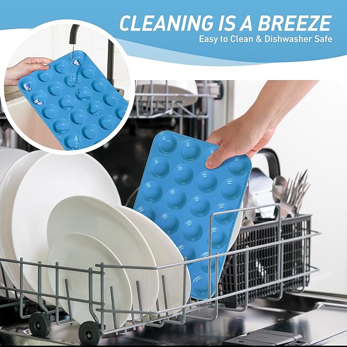 - Effortless Release Every Time: The baking cupcake muffin pans features a smooth, nonstick surface that releases baked goods with just a gentle push from the bottom - no messy greasing or stubborn sticking. After baking, simply place the entire baking cupcake muffin pans in the dishwasher for effortless cleaning. Compared to traditional metal baking cupcake muffin pans, our high-quality silicone material resists oil absorption, reducing residue buildup by 85% for quicker, simpler cleanup.