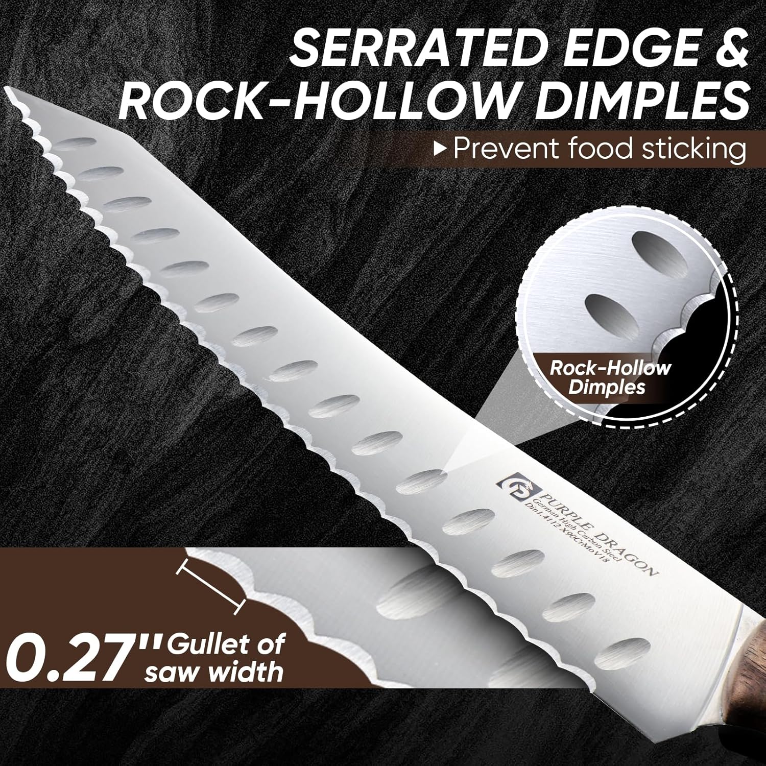 - Purple Dragon Bread Knife for Homemade Bread, German High Carbon Steel Serrated Knife for Sourdough Bread, Cake and Fruits, Gift Box, Anniversary Idea Gift - Pointed