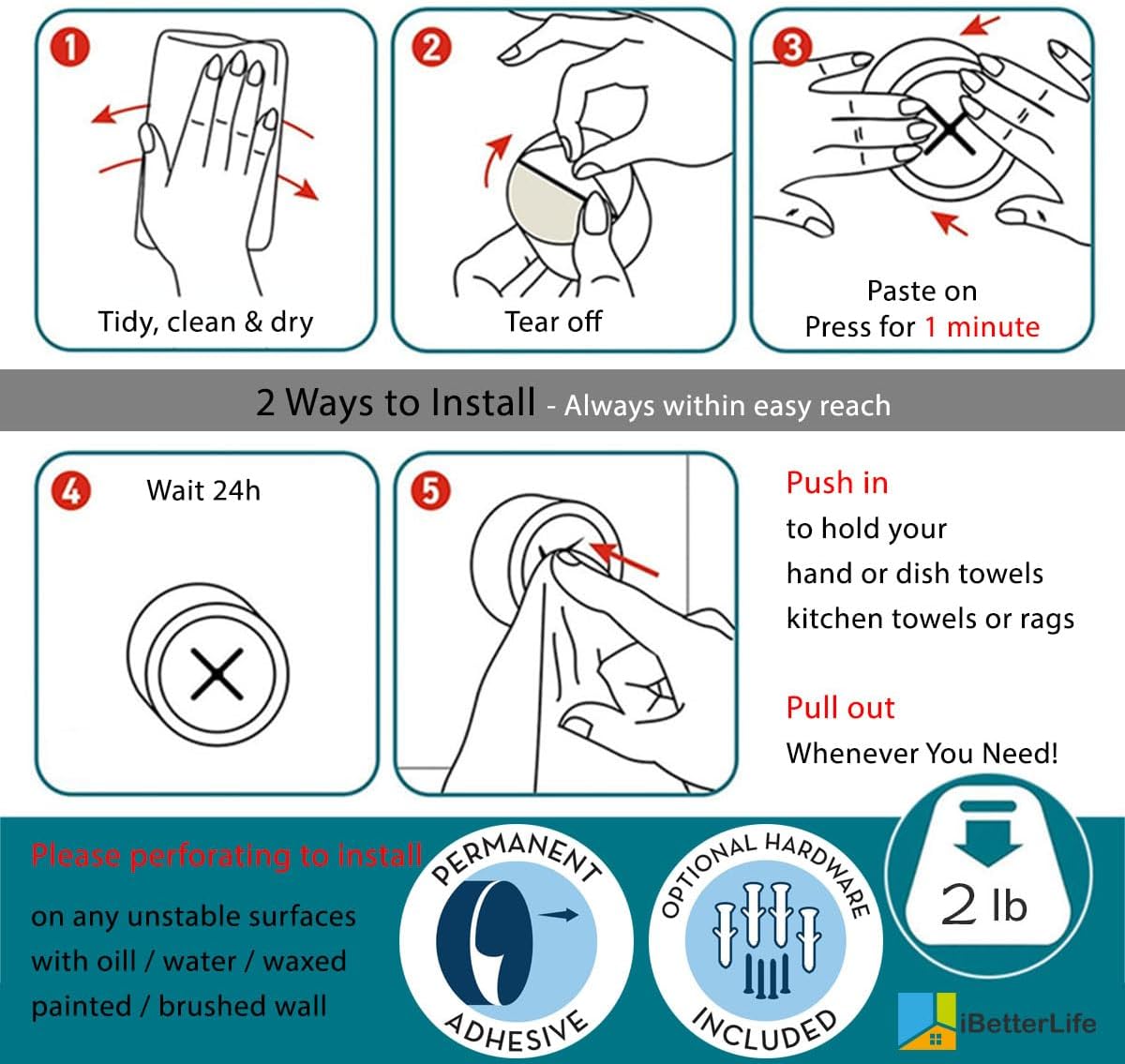 - โ ๐พ๐ค๐ฃ๐ซ๐๐ฃ๐๐๐ฃ๐ฉ & ๐๐๐จ๐ฎ ๐ฉ๐ค ๐๐จ๐ - Simply push dish towels, kitchen towels or rags, dishcloths, oven mitt, laundry gloves or aprons etc. with a finger into the hand towel hook for a secure hold and easily pull the towels out when needed, keeping towels off countertops