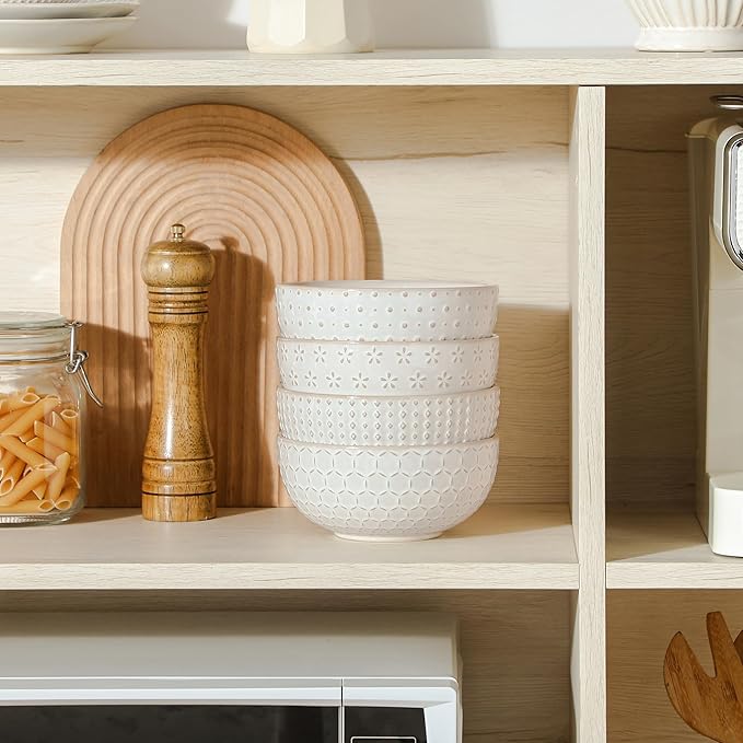 - 【Unique Embossed Pattern Designs】Each set of cereal bowls comes with 4 unique embossed patterns, these embossed designs are not only beautiful, but also increase the friction between your hand and the bowl, which can play a non-slip role. This set of bowls is also designed by our professional designers, perfect ergonomic design