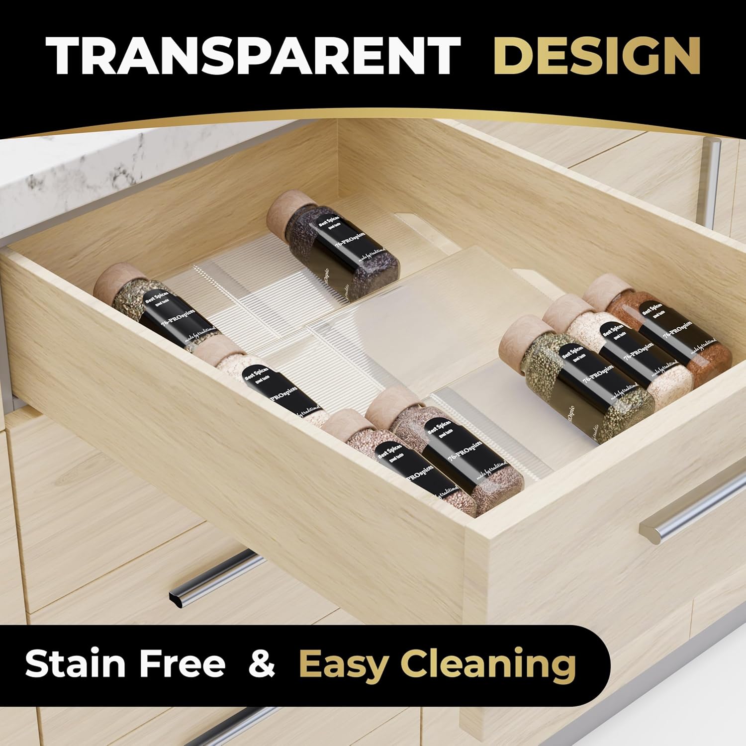 LEVANI Spice Drawer Organizer – 3 Large Tiers, Anti-Slip Grips, Narrow to Standard Drawer Size - Expandable from 8 – 15 inches Wide, Clear Durable Acrylic Spice Rack, No Sliding in Kitchen Drawers