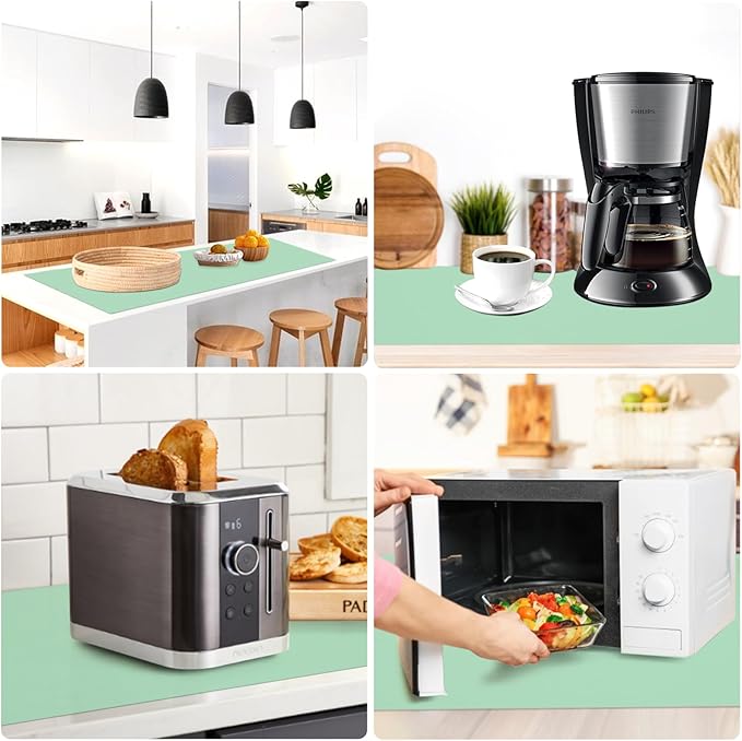 - 【A perfect countertop protector 】The counter protector protect the kitchen countertops and other surfaces against scratches, spills, grease, heat, etc. Heat resistant between -40°F and 446°F, making it safe for placing under the air fryer, microwave, induction stove, toaster oven, coffee maker, etc.