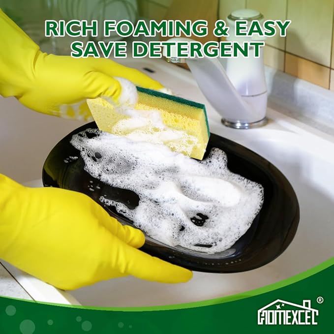 HOMEXCEL Sponges Kitchen 12pcs, Heavy Duty Sponges for Dishes, Scrub Cleaning Sponge for Non-Coated Cookware, Dishes, Pots, Pans, Dual Sided Dish Sponge for Kitchen, Household, Bathroom and More