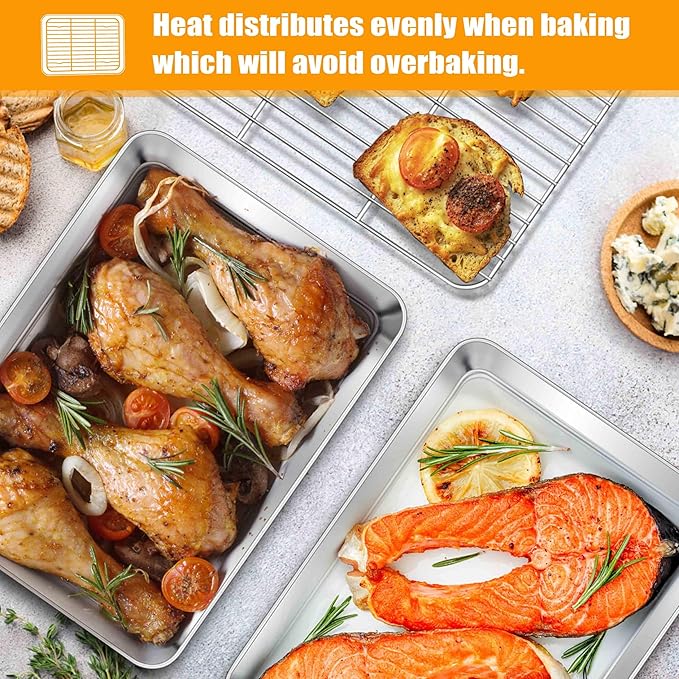 - Premium material, 9" x 7" baking sheet pan with rack is made of stainless steel without any chemical coating, free of rust and corrosion, safe to oven and perfect for roasting cooking cooling, durable for home kitchen restaurant usage, a great replacement of aluminum or ceramic ones