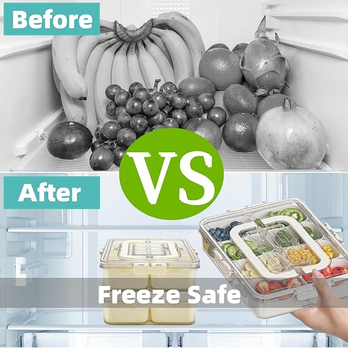 - 【Convenient & Durable】Made of food-grade material, harmless & odorless. The transparent design allows for quick & easy identification of contents. The silicone sealing and 4 side buckles ensure an airtight seal to maintain the freshness and hygiene of the food, as well as freezer safe and can work as a refrigerator organizer for vegetables or fresh ingredients.