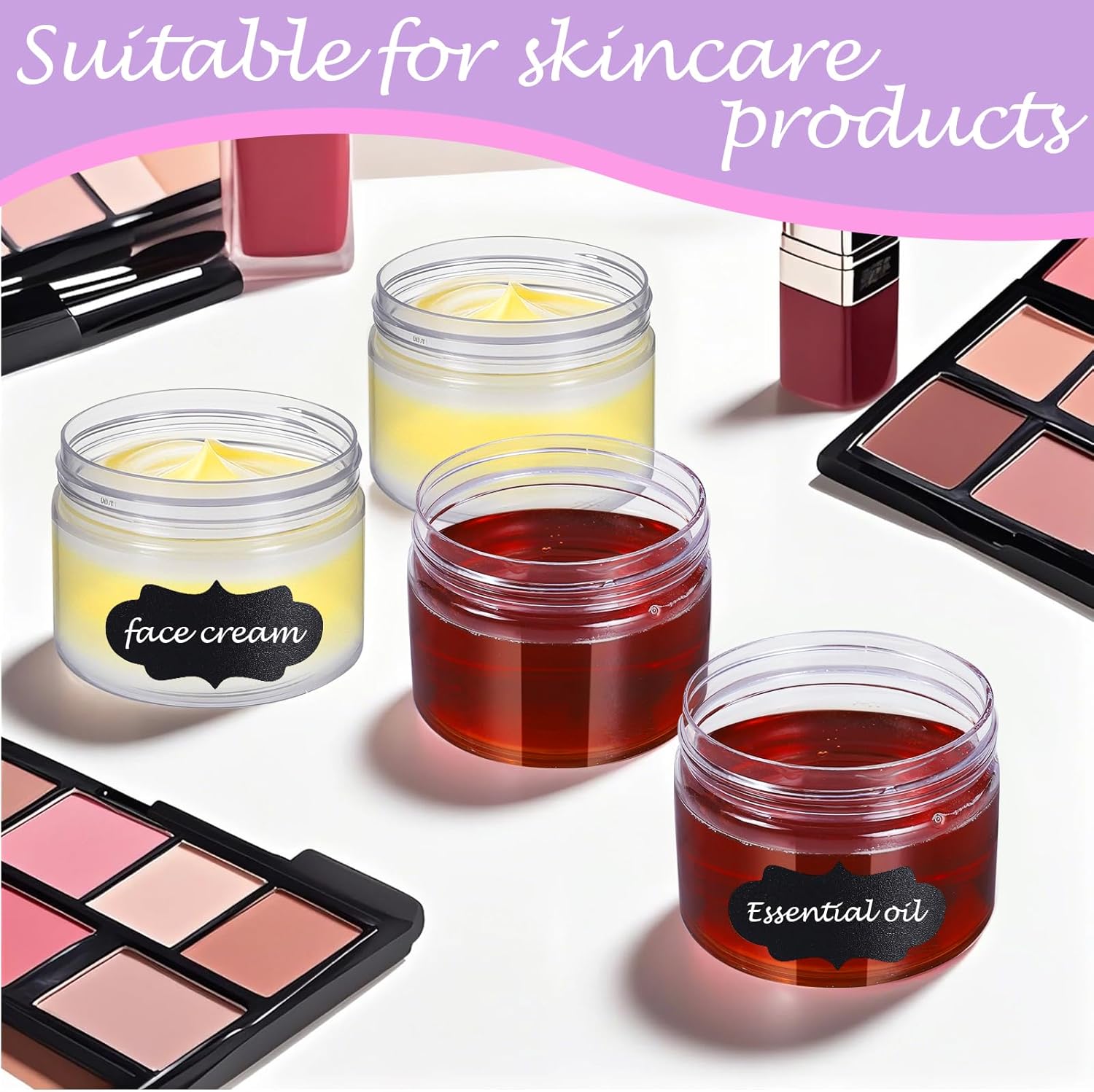 72 PCS 4 OZ Plastic Jars with Screw On Lids,Labels Refillable Empty Round Slime Cosmetics Containers for Storing Dry Food, Honey Jam, Cream, Butter, Lotion, black