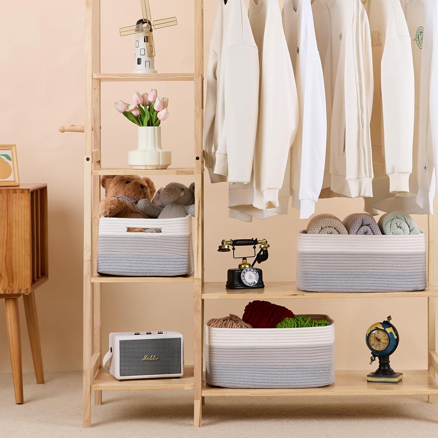 Large Storage Baskets for Organizing, Closet Shelf Baskets for Clothes Blanket Towels, Baby Nursery, Toy Bins Box, Woven Rope Baskets, 17 x 13 x 7.5”, 4 Packs Gradient Grey