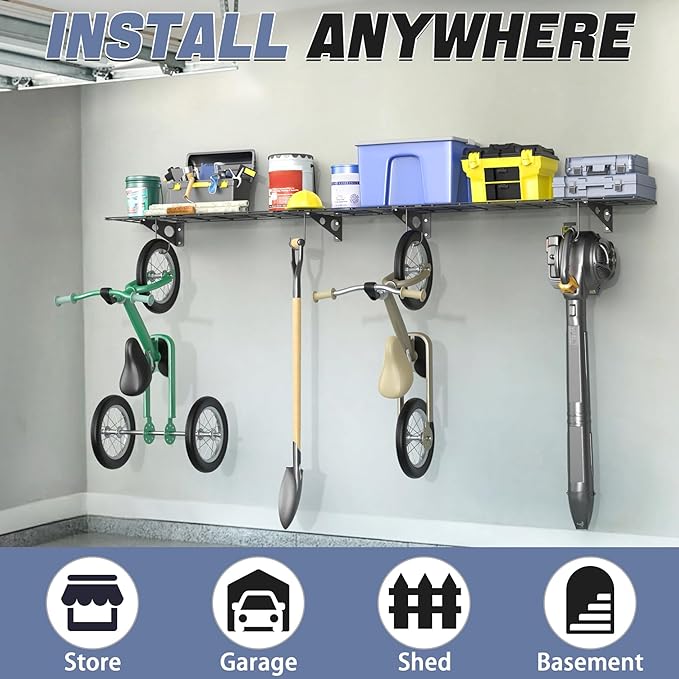 - Save Your Floor Space: Maximize your storage area by keeping your garage, closet, or laundry room organized with this wall-mounted shelf. Clear up floor space and make your space cleaner and more efficient