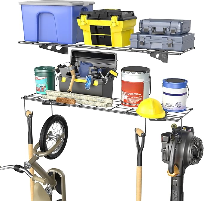 - Well Constructed: Built from high-quality steel with a durable powder-coated finish, this garage wall shelf is designed for long-lasting use. Each shelf holds up to 220 lbs, making it perfect for storing tools, equipment, and more