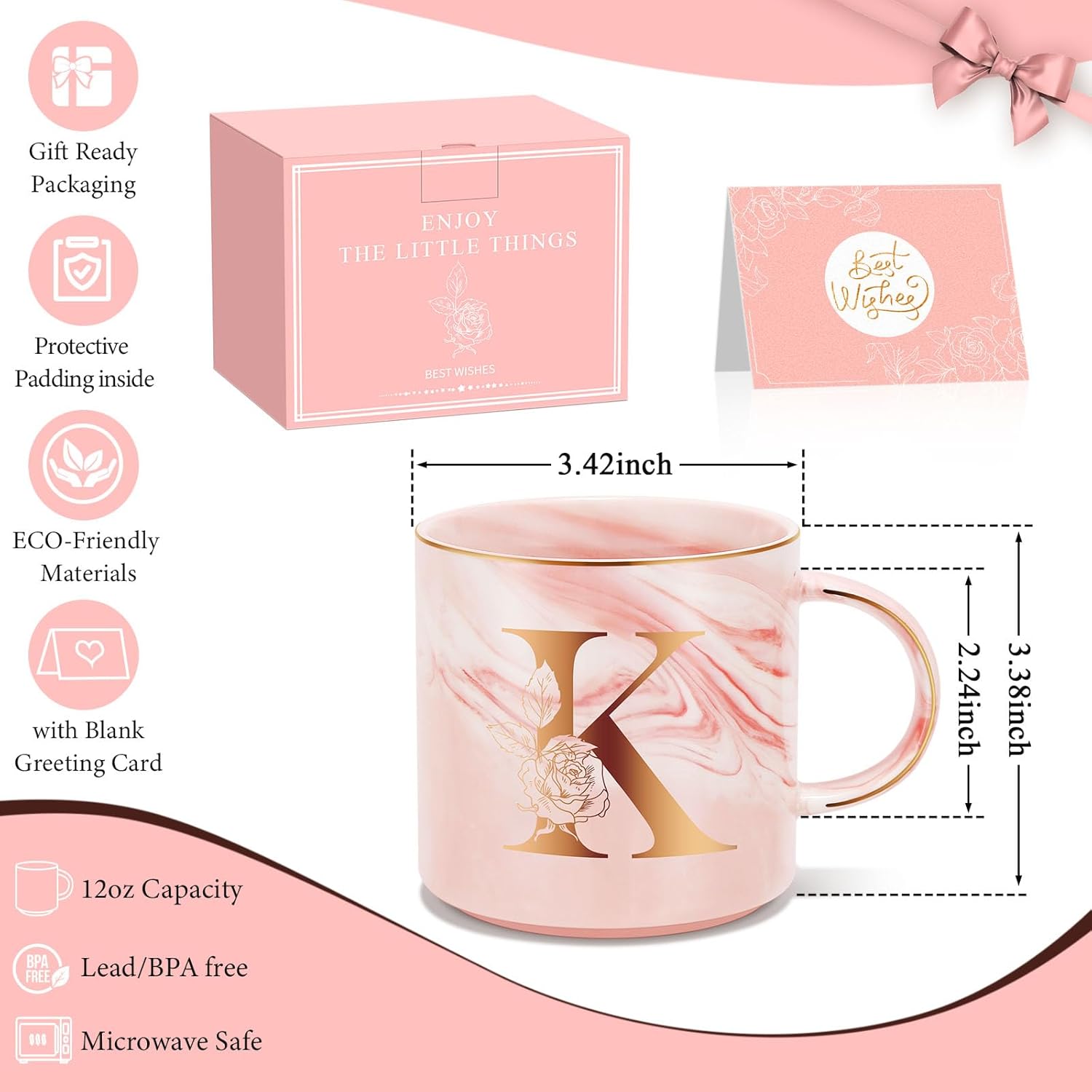 - Personalized Gifts for Women:Handcrafted with premium biodegradable clay & zero lead/cadmium, and with premium marble glaze & gold foil accents creates,this 12oz ceramic coffee mug customized coffee cup combines safety with sophistication. "Her initials in gold" design becomes cherished family heirloom,Choose from 26 alphabet letters to create truly Birthday Gifts, Christmas gifts,Valentines Day Gifts, Mothers Day Gifts.