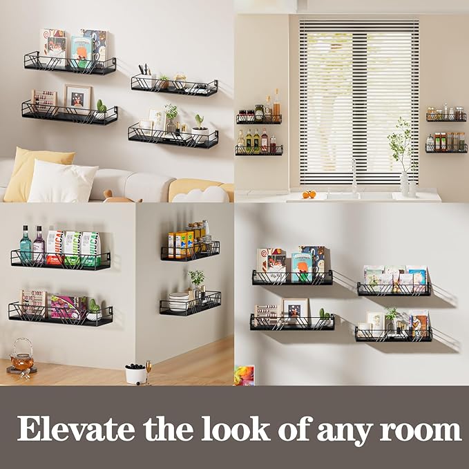 - Space-Saving Design: This wall shelves Maximize your wall space while freeing up countertops in bathrooms, bedrooms, guest baths, kitchens, and living rooms. The sleek design blends seamlessly with modern, minimalist, or vintage décor, keeping your space organized and stylish