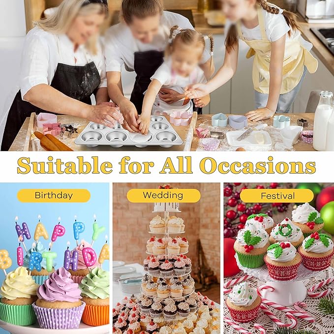 - 12-Cup regular size, the cupcake pan designed with 12 standard size cups, each cup measures 2.75" x 1.2", so you can bake dozens of corn bread muffins or cupcakes in muffin tin at once to save time, perfect for home every day cooking, birthday, tea party, holiday, wedding, baby shower and more