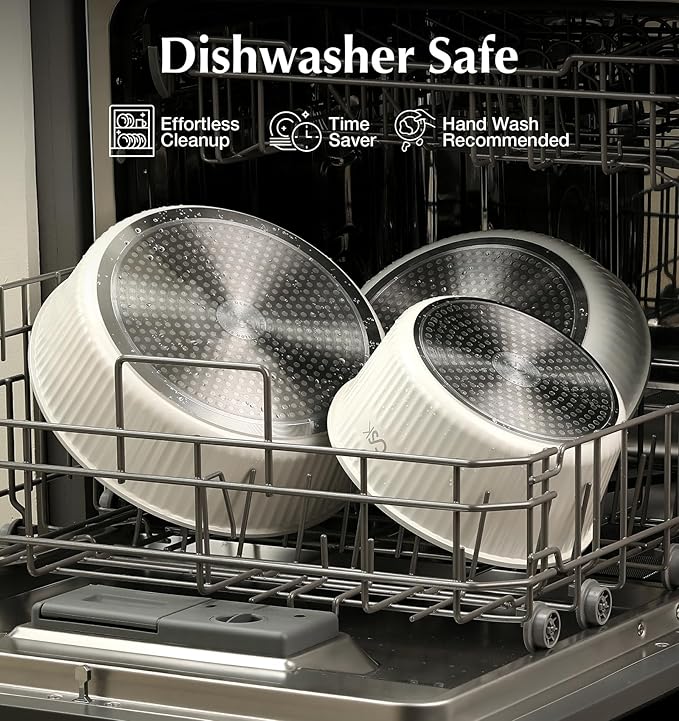 - Effortless Cleaning: Dishwasher safe cookware set for effortless clean up. Saving you time and labor on cleaning with our nonstick cookware set. Easily remove the handle for a quick and thorough wash, keeping your cookware and kitchen spotless.