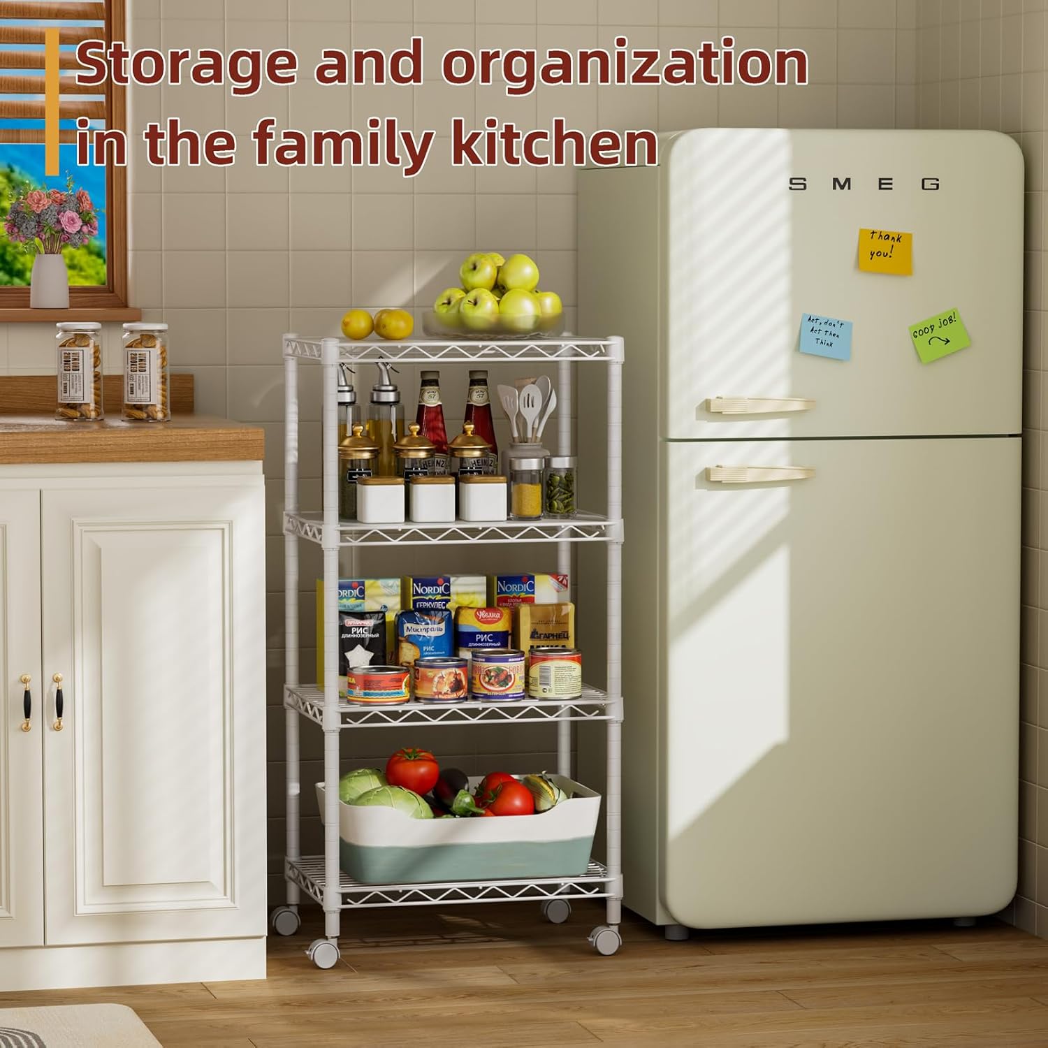- Convenient Home Storage: Metal wire shelves with adjustable spacing make perfect for narrow spaces or room corners such as kitchens, bathrooms, laundry rooms, balconies, garages, entries, or offices.