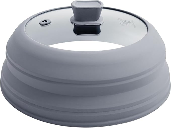 Microwave Splatter Cover for Food Collapsible Glass Microwave Cover Silicone Splatter Guard Dishwasher Safe Splatter Lid for Plates, Bowls, Pots & Stovetop Cooking 10.8" Gray