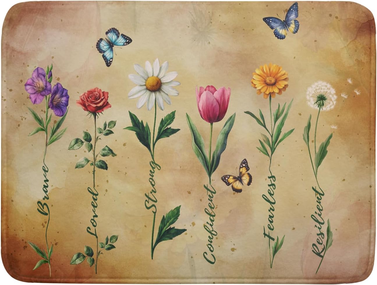 Inspirational Flower Dish Drying Mat - Rustic Vintage Floral Kitchen Absorbent Dish Dryer Mat for Women