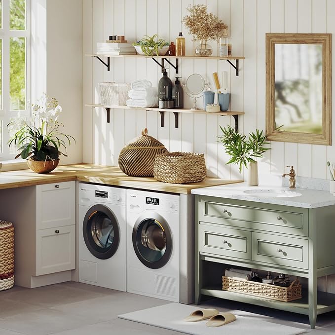- 【Fit for All Rooms】The shelves for wall storage is gospel of small family to enjoy the tranquility of home. The large floating shelves allow you to store books, games, decorations, plants, towels, photos, etc. Creating extra storage in living room, bathroom, bedroom, closet, balcony, study, kitchen, laundry, bar area, pantry and office, etc