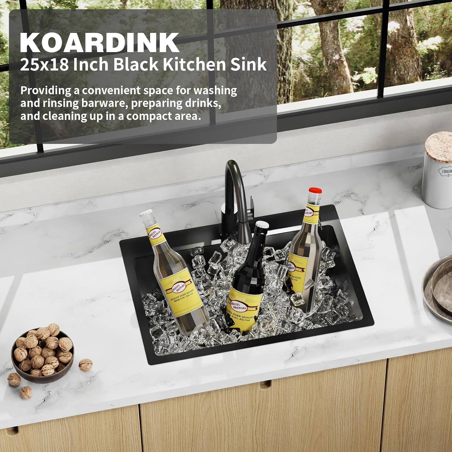 - Stainless Steel Sink: With exterior size-25"x18"x9", interior size 23"x14"x9", topmount black kitchen&bar sink seamlessly transition between kitchen and bar environments, catering to different needs in both settings. Drop in kitchen&bar sink is practical choice for versatile use across kitchen and wet bar applications.