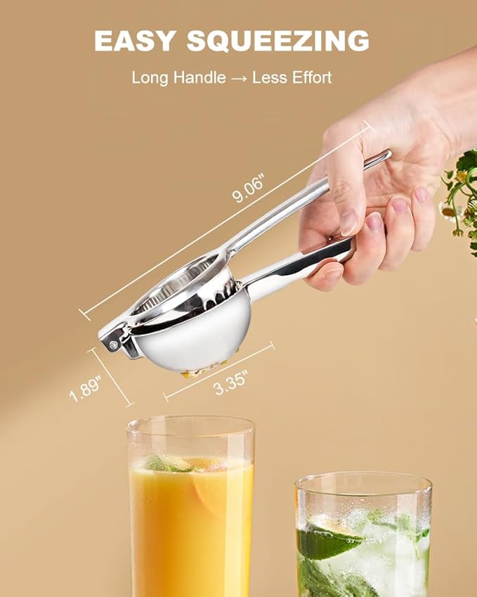 - 【DURABLE FULL STAINLESS STEEL】 Made of solid 304 stainless steel with a heavy-duty 0.8lb construction, this lemon juicer won't bend or break under pressure. The integrated design and reinforced joints ensure long-lasting use in any kitchen.