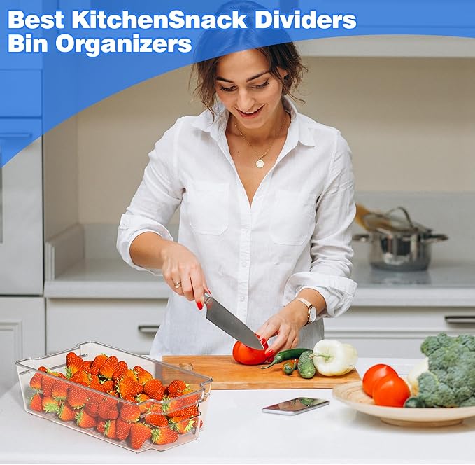 - Durable Shatterproof Bins: Clear plastic storage bins suitable for fridge organizers & storage, freezer organizer bins, pantry storage, cupboard organizers & storage, food organizer containers, or cabinet snack organizer