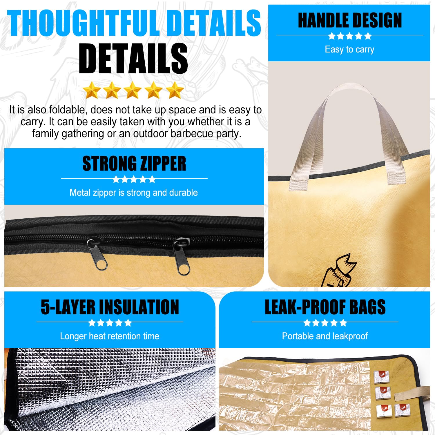 - 【Brisket Resting Bag】 ✅ "2-HOUR HEAT RETENTION & INSULATED – Heavy-duty 3-layer thermal lining (with PEVA waterproof core) keeps meat hot for 2+ hours, locks in smoky flavor and juices for tender results!"