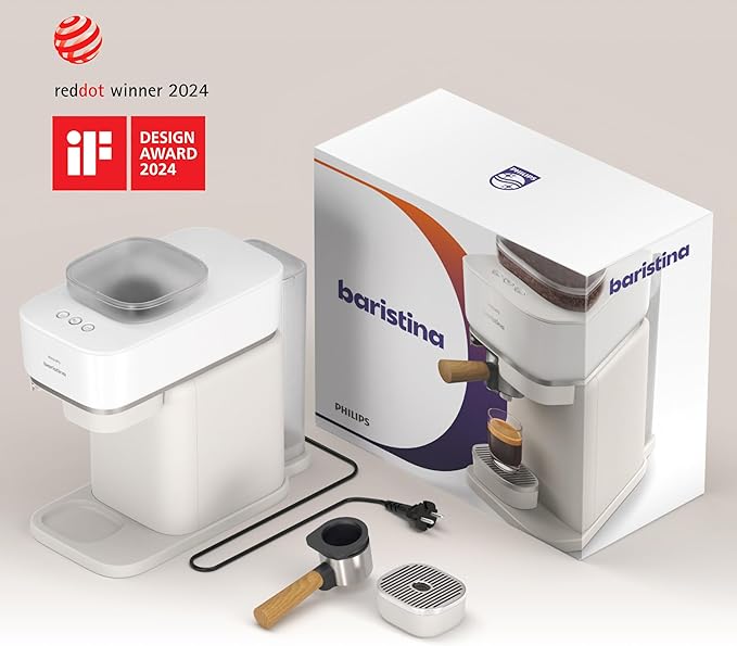 PHILIPS Baristina Espresso Machine, Grind, Tamp & Brew Coffee Beans in One Swipe, Compact, 16 Bar Pump Pressure, Automatic Grinder, Natural White with Ash Wood Portafilter (BAR302/20)