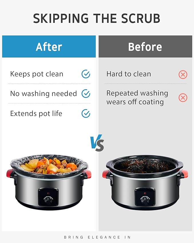 - Effortless Cleanup: Simply place the liner in your crock pot, add ingredients, and cook. When finished, just discard the used liner and wipe the pot clean, no more soaking or scrubbing is required. Ideal for busy households, meal preppers, or anyone seeking hassle-free cleanup.