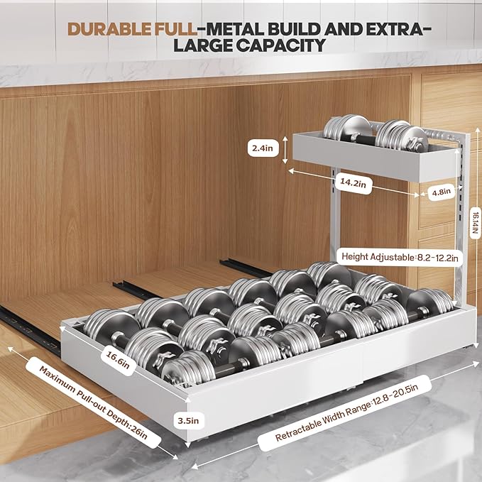 - 【Full-Metal Construction with Rust-Resistant Finish】 Crafted entirely from metal, this under cabnet organizer features a reinforced frame that offers excellent strength and stability. The surface is coated with a rust-resistant finish, which allows it to withstand long-term use in humid environments such as kitchen and bathroom cabinets.