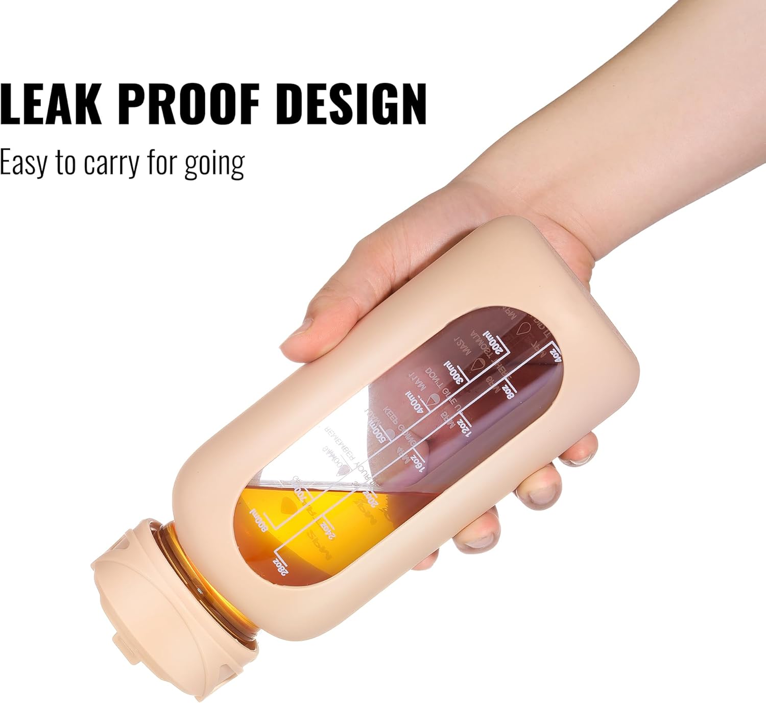 - SUITABLE OCCASIONS: The aesthetic glass water bottle is ideal for daily hydration at home and at work,solve the problem of not drinking enough water. It also serves as a motivational water bottle for the outdoors, gym sports, travel, picnic, etc
