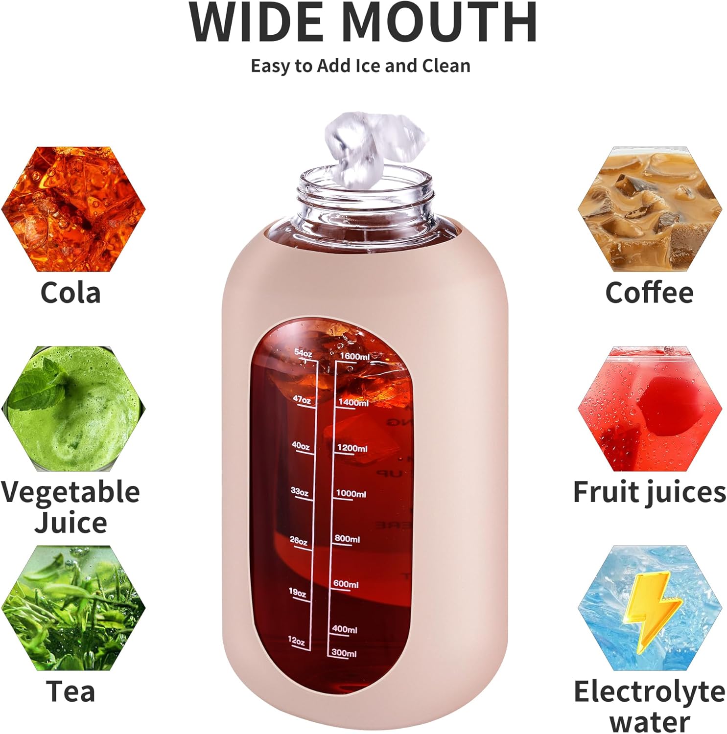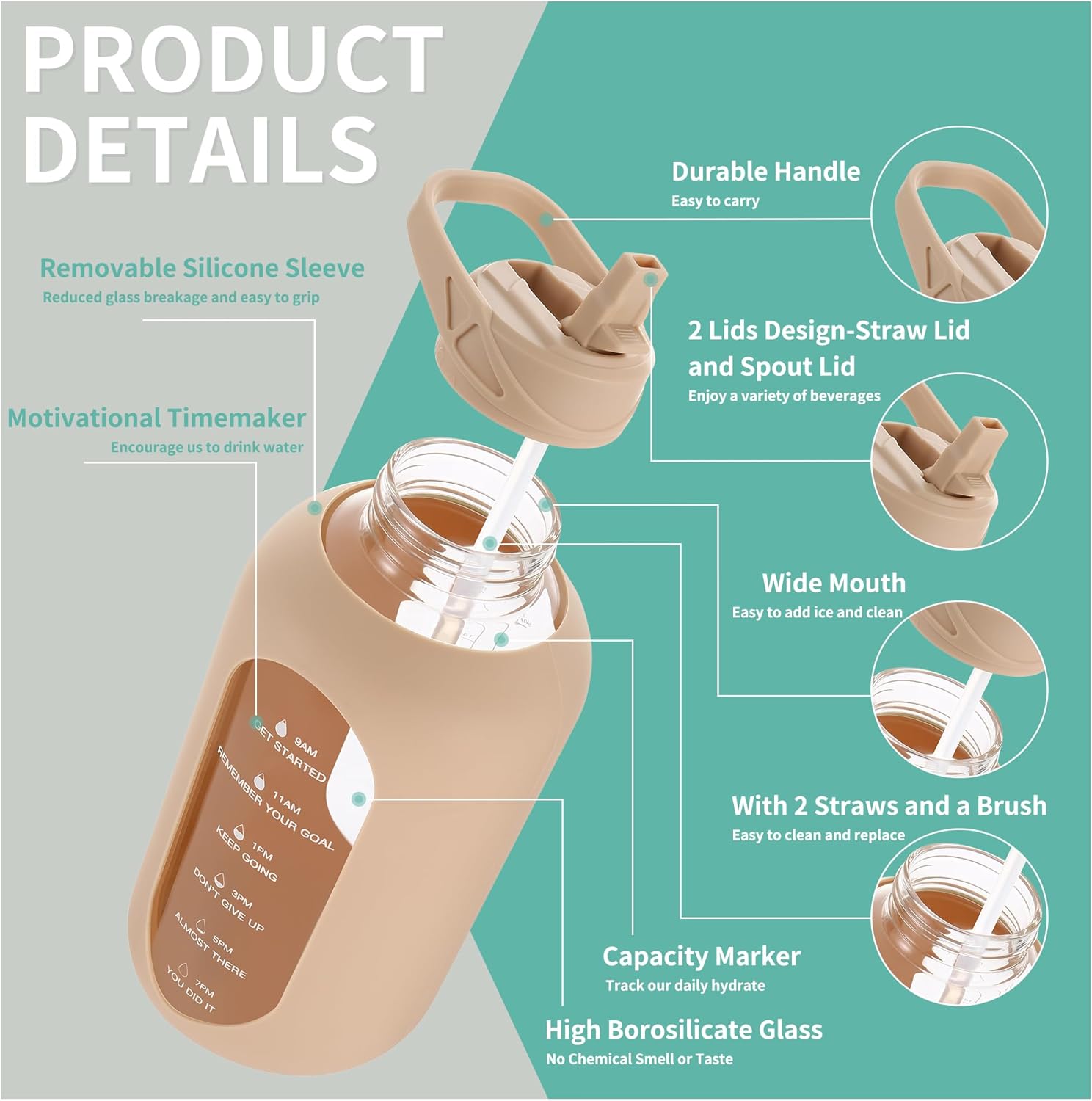 - TRACK HYDRATION AND TIME MARKER DESIGN: The glass water bottle comes with time markers and exact volume on the side, monitor your daily hydrated intake and stay on track meet your health and fitness goals, nudge you getting into healthy habit of drinking water
