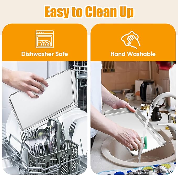 - Easy to clean, nonstick metal quarter sheet pan has excellent heat conductivity for evenly baking with no burning, provide great baking performance, super sleek mirror finished surface to reduce the risk of food sticking, offer quick food release and easy cleaning, dishwasher safe to save time