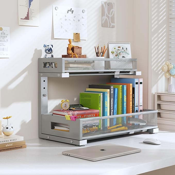 - 【Larger Size, Greater Practicality】Our organizer features a bottom basket size of 17" x10" and a top basket size of 17" x 6.5", offering approximately 30% more storage space compared to standard products, which have bottom baskets of 13.7" x 8.9" and top baskets of 12.5" x 5.4". This enhanced capacity provides more room to keep your items neatly organized and accessible.