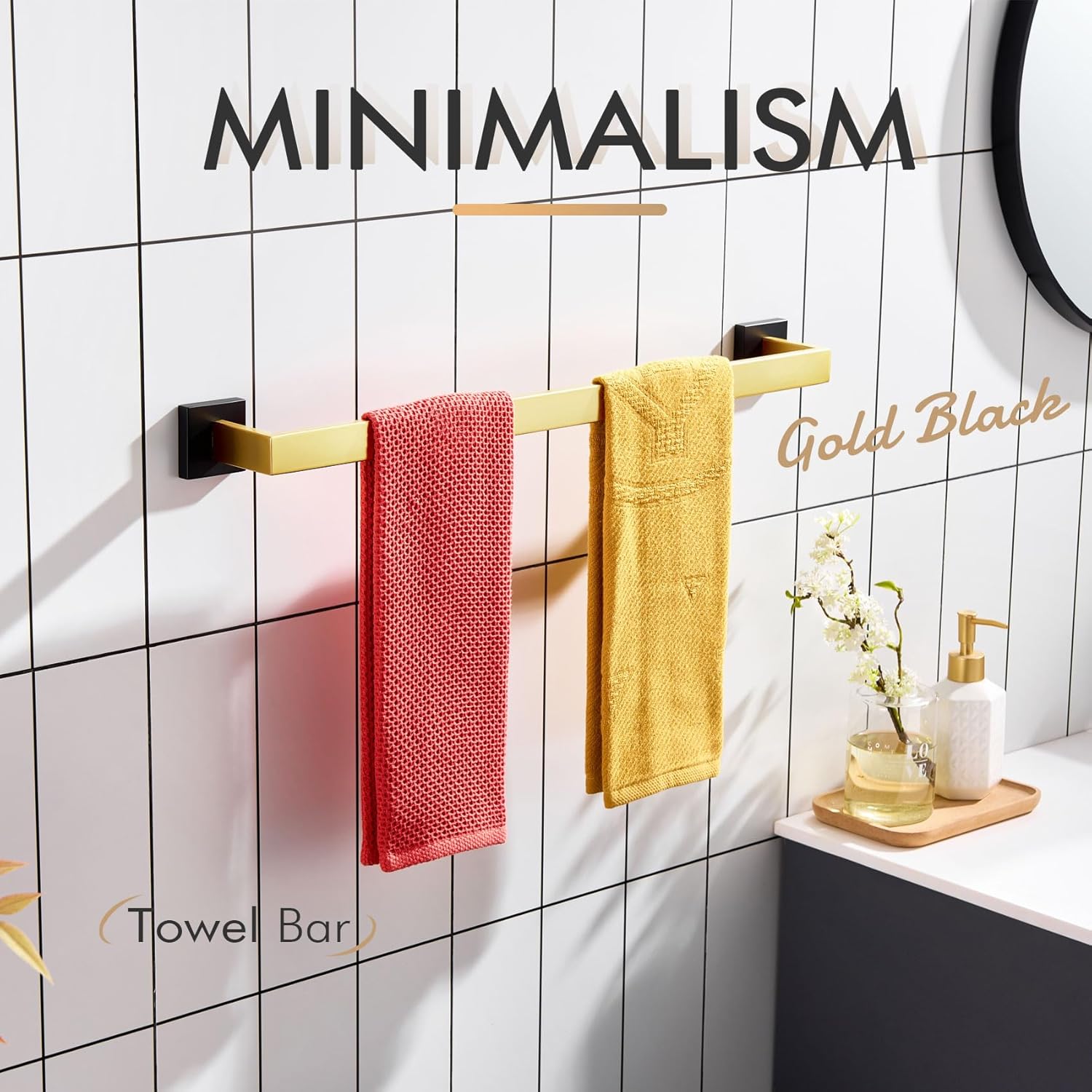 KOKOSIRI 24-Inch Towel Bars for Bathroom Wall Mounted Kitchen Towel Rack Holder T-304 Stainless Steel Matte Black and Brushed Gold, B4003GDK-L24