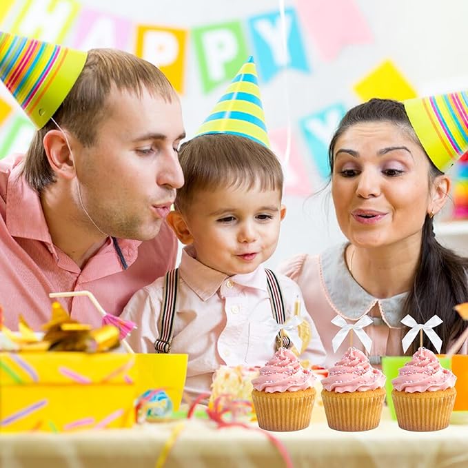 - Package included: The white bow birthday decorations set includes 40 pcs white bow cupcake toppers. Ensuring the perfect fit for your cupcakes and desserts, these pink bow cupcake decorations adding a fun and festive touch to your table setting