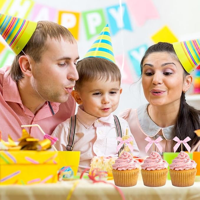 - Suitable for Many Occasions: These Pink Bow Birthday Decorations are perfect for pink bow birthday party, coquette party, baby shower, bridal shower, wedding, family gathering party. They will make your cupcakes more appealing and bring fun to your party, and make your guests love them!