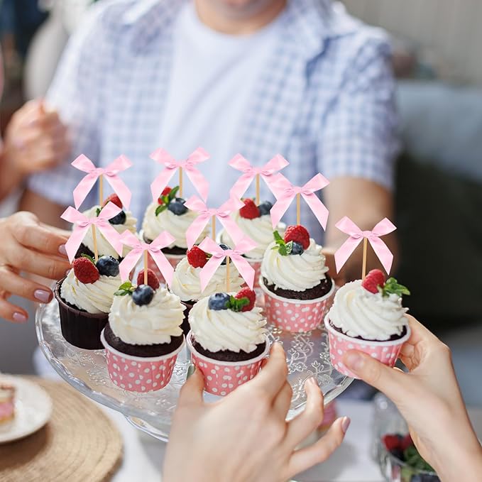 - Package included: The pink bow birthday decorations set includes 40 pcs pink bow cupcake toppers. Ensuring the perfect fit for your cupcakes and desserts, these pink bow cupcake decorations adding a fun and festive touch to your table setting