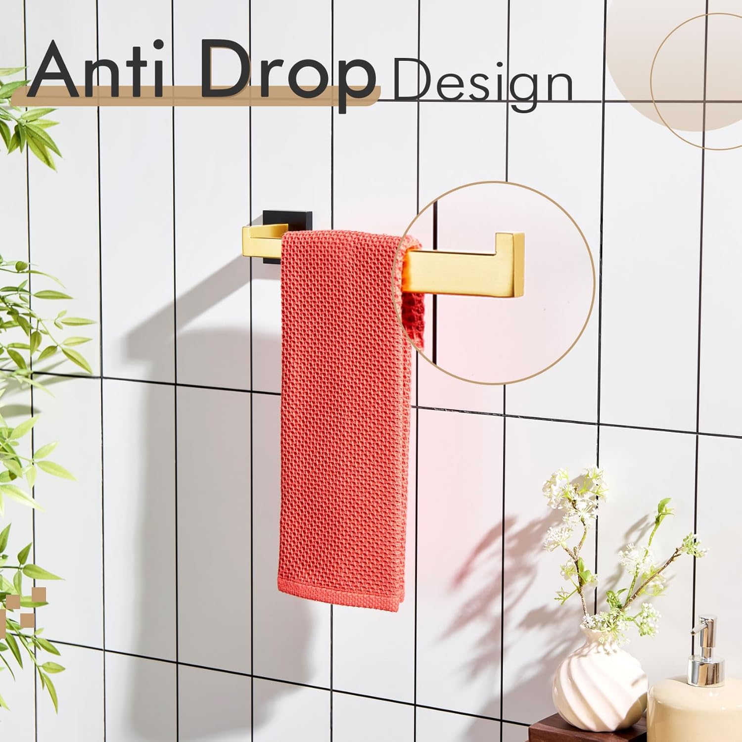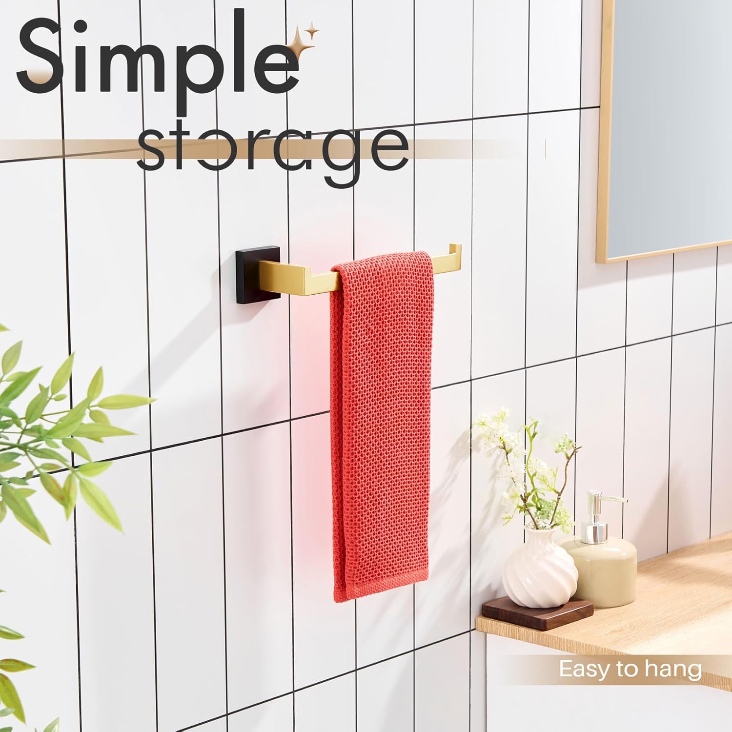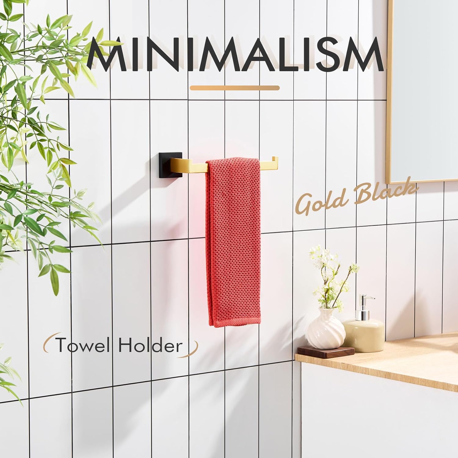 KOKOSIRI Towel Bar for Bathroom Wall Mount 9'' Hand Towel Holder T-304 Stainless Steel Bath Kitchen Accessories Matte Black and Brushed Gold, B3003GDK