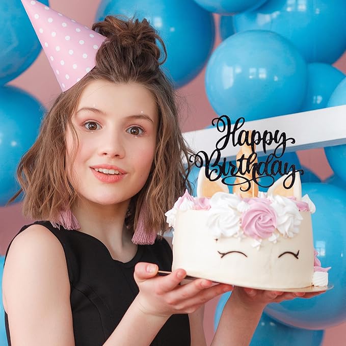 Happy Birthday Cake Toppers 9 Inch Glitter Happy Birthday Cake Pick for Birthday Anniversary Theme Party Cake Decorations Supplies - Black