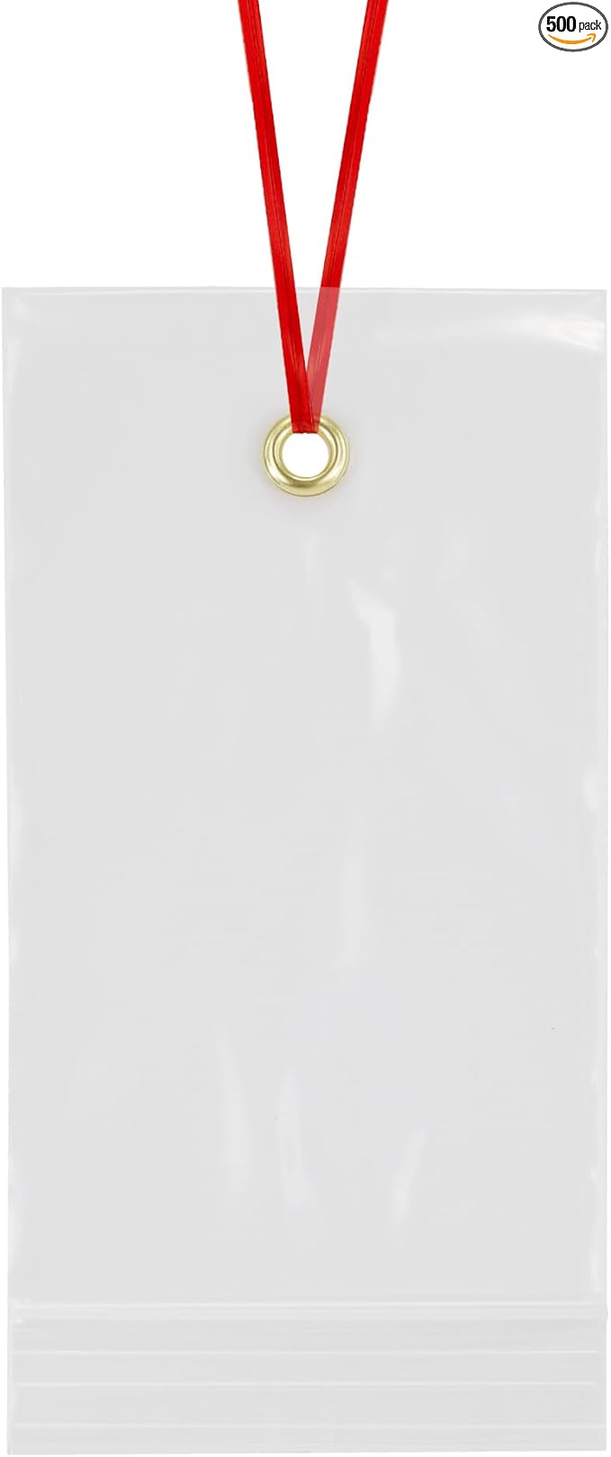 GPI - 3.5" x 6" Reclosable Zip Bags with Bottom Hang-hole & Pre-inserted 12" Twist-tie. 4 Mil Heavy-duty Resealable Zipper Baggy with Grommet/Metal Eyelet for Hanging (Insert Size 3x4.5) 500 Pack
