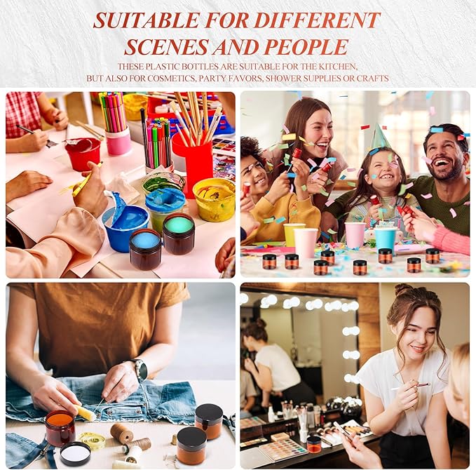 SATINIOR 6 Pack 4 oz Plastic Jars Containers with Lids Wide-mouth Refillable Leakproof Reusable Round Empty Jars for Travel Cosmetic Dry Food Spice Cookie Candy Home Kitchen Organizing(Amber)