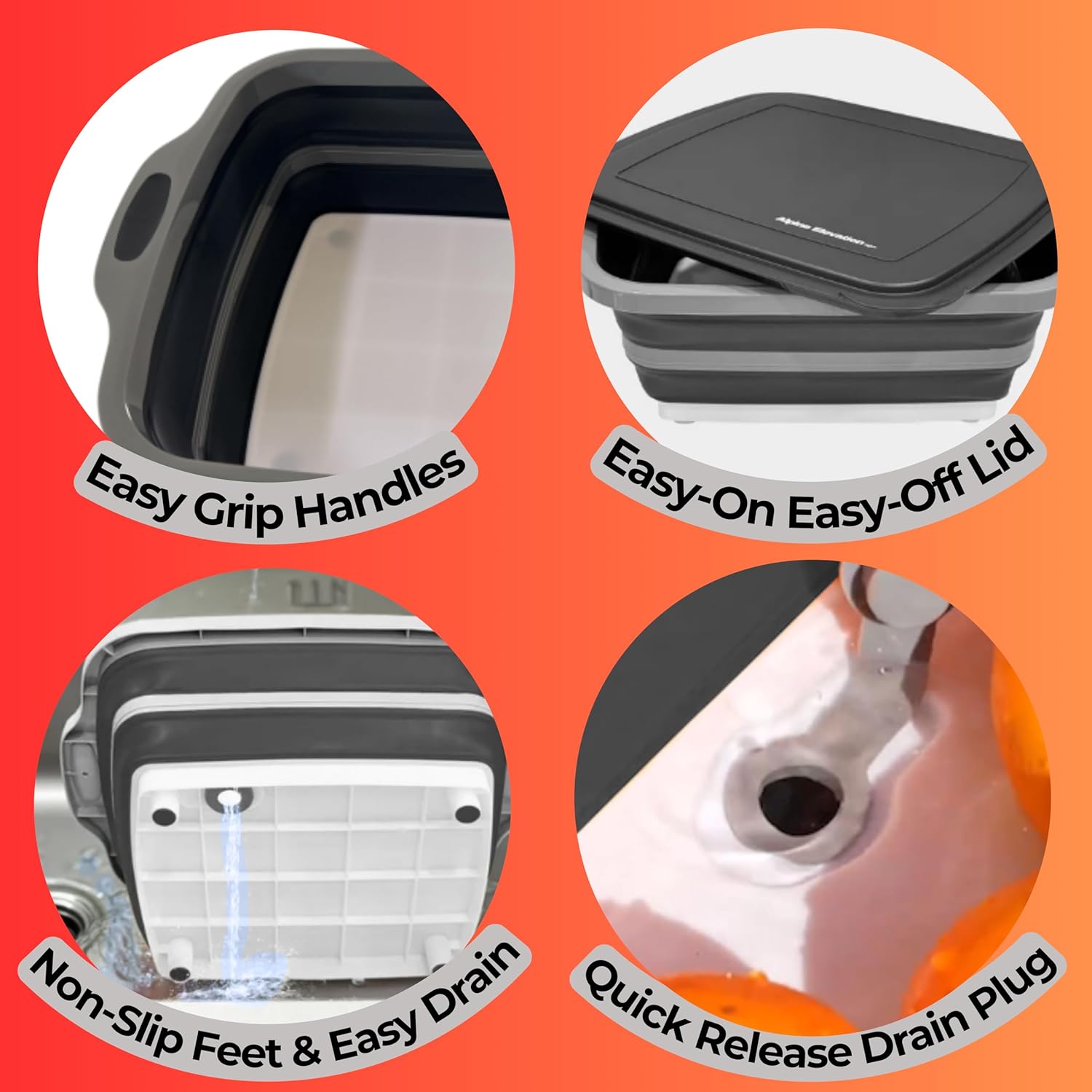 - Shape-Shifting Magic – Collapsible Design – Use fully expanded for large meal prep, half-collapsed for small batches, or fully flat for slicing or serving. Folds down to 1.5" for easy storage—perfect for camping, BBQs, RVs, tailgating, and small kitchens.