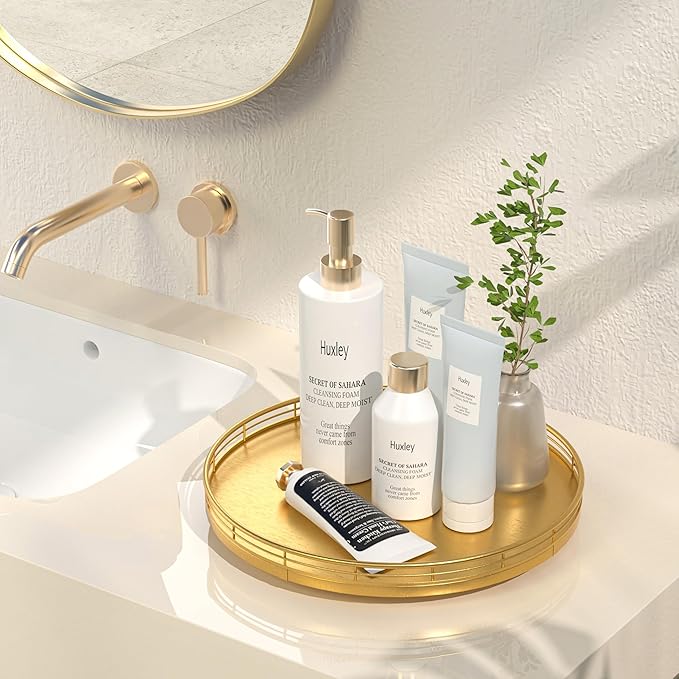 - Multi-Purpose Usage: Perfect for a wide range of occasions and spaces. Whether used as a centerpiece table decorations, a vanity tray in your bathroom, or an organizer on your kitchen, this versatile gold round tray adapts to your needs in any room
